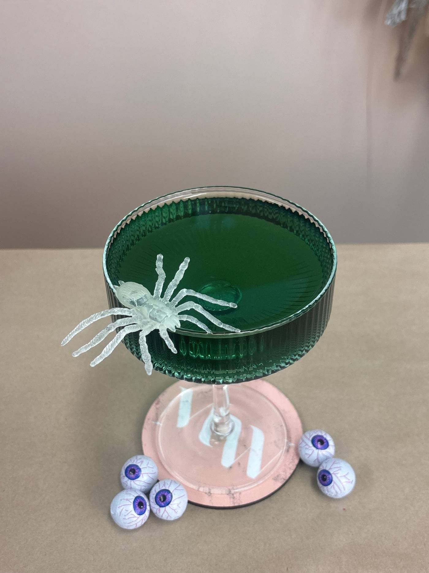 Chocolate eyeball candies, placed around the glass for a spooky vibe