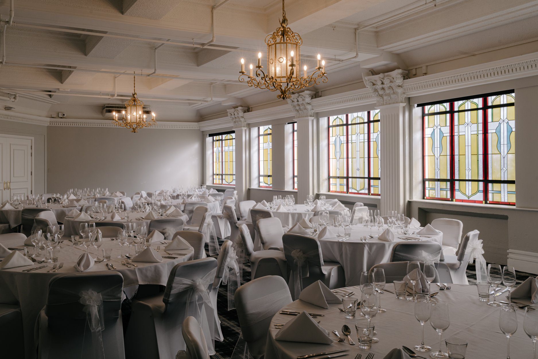 For couples in Dunedin, the Chancellor Room features breathtaking stained glass windows, making it a memorable venue for larger wedding receptions or ceremonies with up to 110 guests. The Chancellor Lounge, adjacent to the Chancellor Room, is perfect for a pre-wedding gathering or smaller events. The Bracken Room is ideal for intimate bridal parties or small pre-wedding celebrations, while the Godfrey Room provides an elegant space for intimate gatherings like private wedding meetings or small family events.