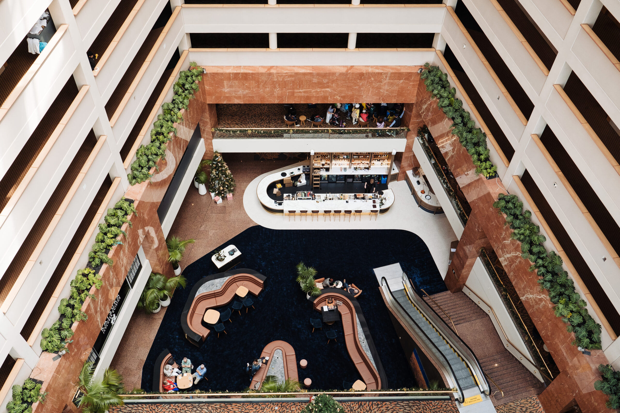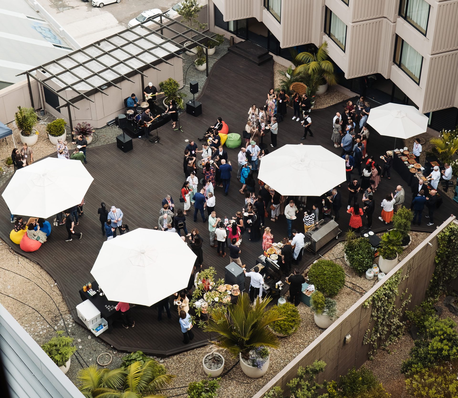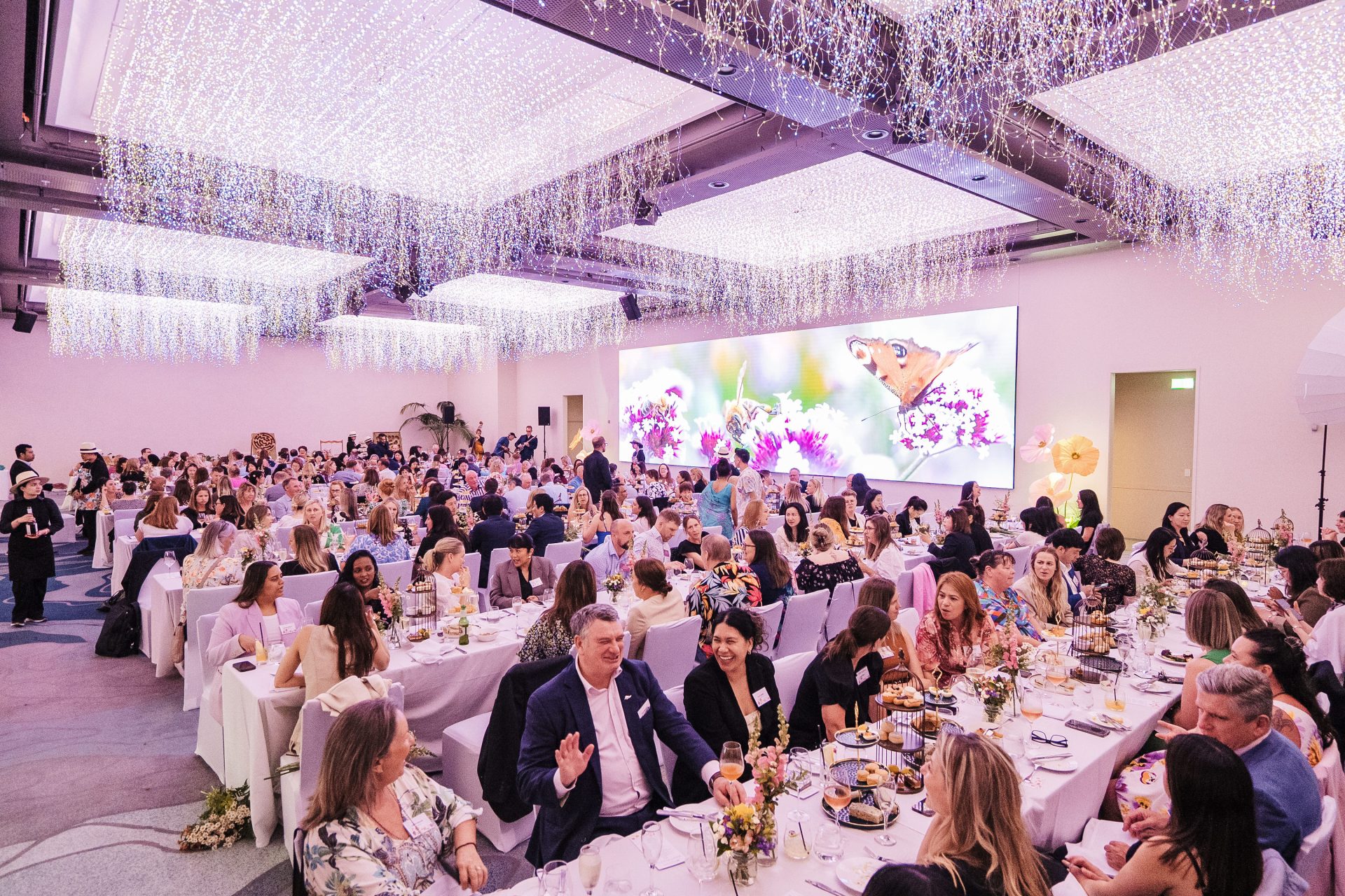 The crown jewel of the venue is the Grand Ballroom, a testament to transformative design and artistic vision. The Sky Garden, a lighting masterpiece by James Russ Studio, immerses the space in an ethereal glow, evoking the splendor of a celestial garden. Accompanied by a grand LED wall and refined interiors, the ballroom’s design, inspired by the Wai o Horotiu stream, weaves the essence of local lore into the fabric of the celebration.